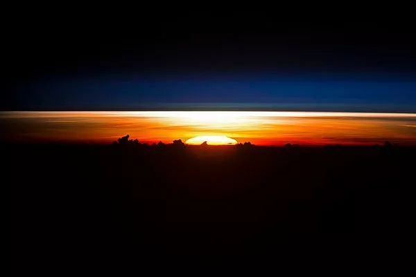 這張照片是在國際太空站飛越越南海岸上空時拍攝的,拍攝時太陽正從菲律賓海上緩緩升起,只露出一部分。太空人每24小時可以見到16次日出。盡管在地球上或在太空中直視太陽都對眼睛不好,但透過數(shù)位相機就可以捕捉到平時難得一見的畫面。