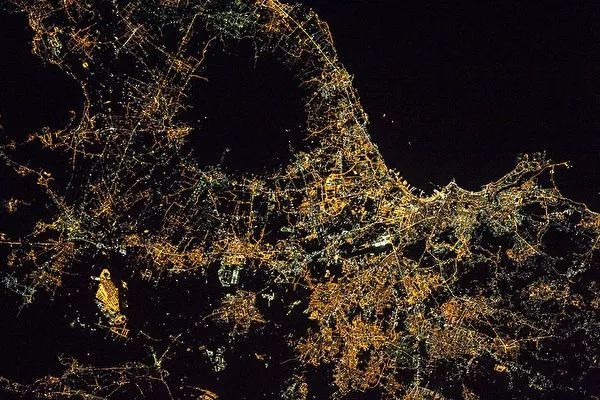 這張照片呈現(xiàn)歐洲西北部幾個城市的燈光,在夜間顯得十分燦爛。