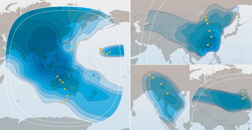 APStar-6C將提供三個Ku波段覆蓋區:1)向中國東部提供集中覆蓋,集中傳輸功率圍繞香港等大型樞紐; 2)在包括緬甸,泰國和老撾在內的東南亞提供服務; 3)為蒙古提供專門的覆蓋區。